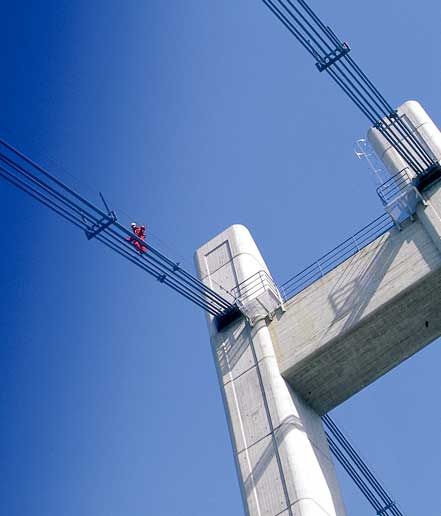 Például, egy függőhíd, egy Latchways ferde rendszert lehet telepíteni a munkavállalók védelme érdekében, mivel azok fenntartása a kábeleket, a horizontális rendszer biztonságossá teszi a munkát az alsó a híd, és egy függőleges rendszer lehetővé teszi a biztonságos hozzáférést a tornyok.